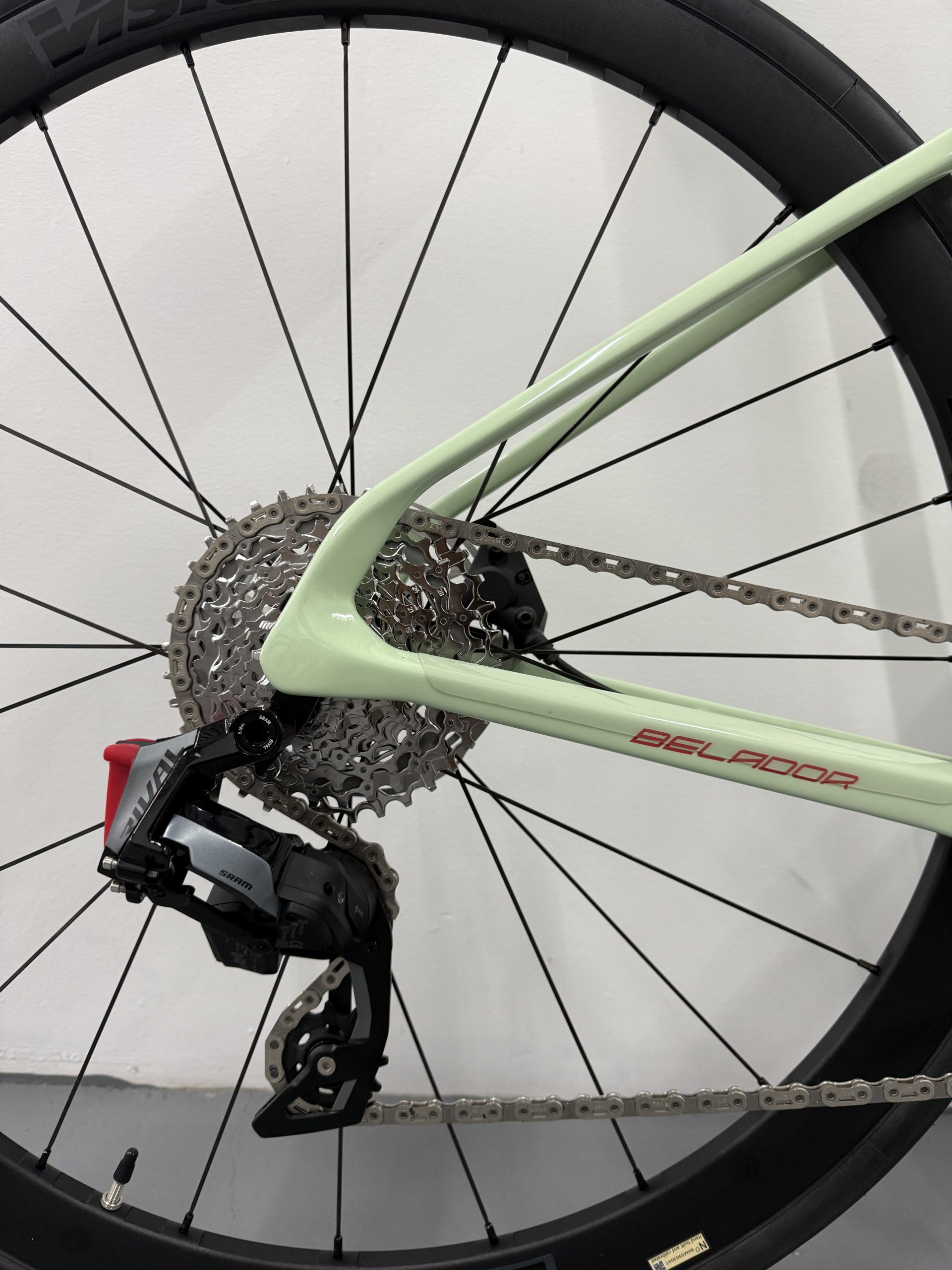 La Belador PRO da un salto significativo con el cuadro Belador 6 de carbono HM2X, el manillar integrado Avanforce Airone en carbono (todo en uno), grupo electrónico inalámbrico SRAM Rival AXS 12v y tecnología Power Meter integrada (PWM). La geometría ASE ha sido optimizada en túnel de viento del Politecnico di Milano logrando un ahorro de 4 vatios frente a la generación anterior. Para el ciclista que no quiere ceder ni un watt.