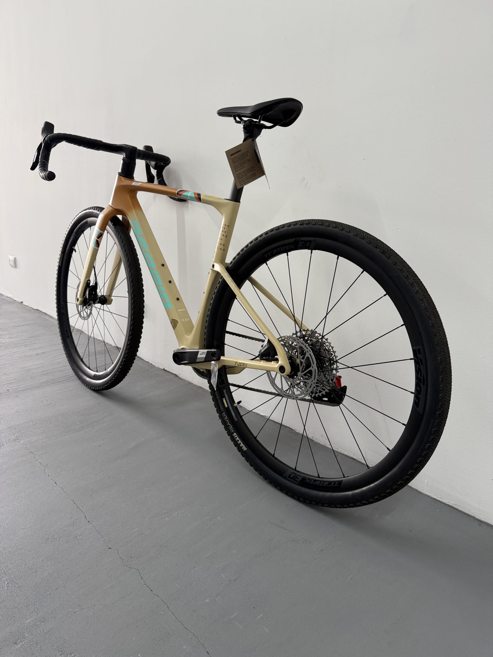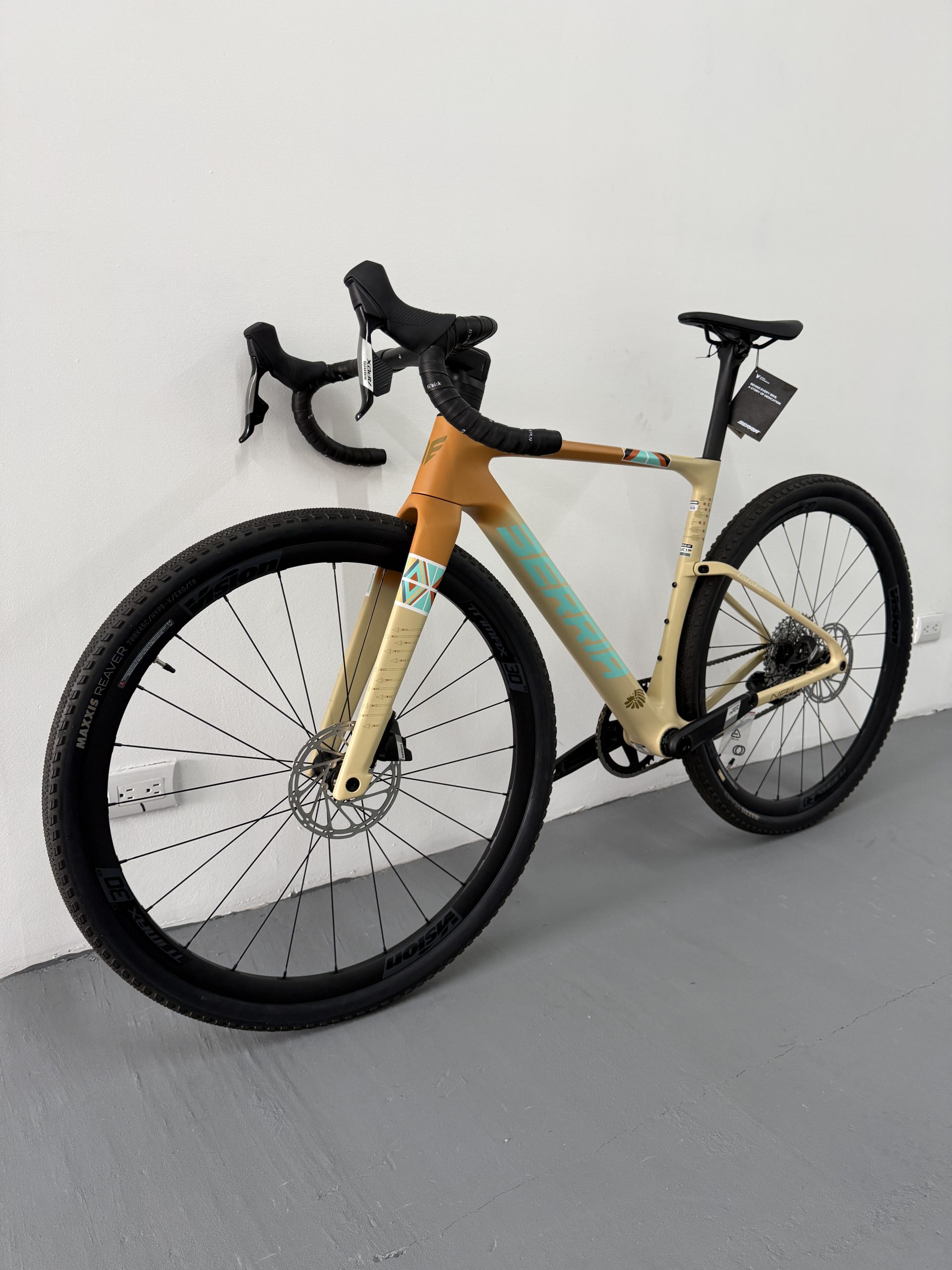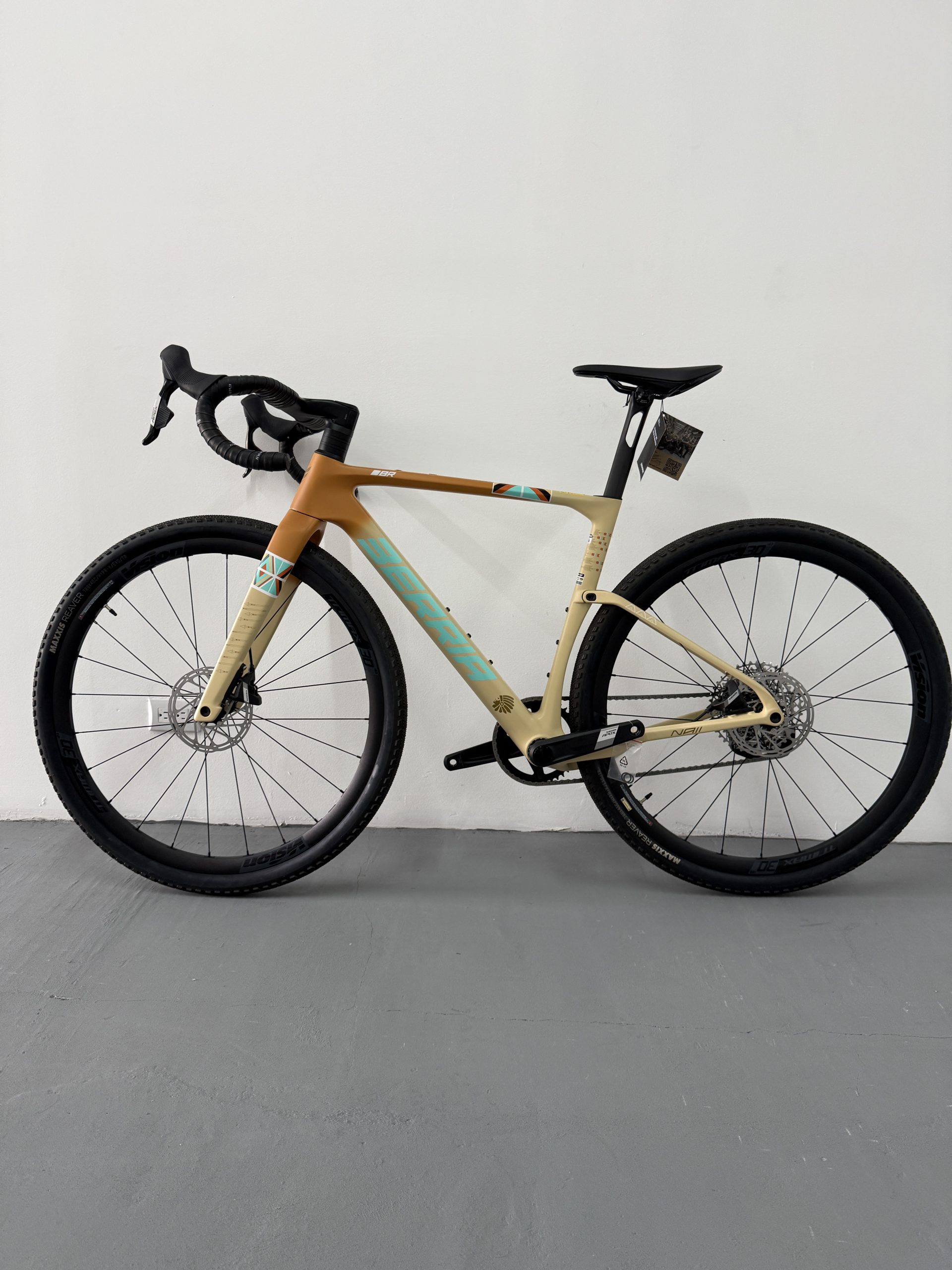 La NAII BR es la nueva gravel de referencia de Berria, diseñada desde cero para el gravel de competición. Cuadro en carbono HM3X (mezcla de fibras T1100G, T800 y T700) con el sistema SOFTEX de 28mm, manillar integrado Avanforce Airone GR en carbono, cableado ICS2 completamente oculto y transmisión electrónica inalámbrica SRAM Apex XPLR AXS 12v. Clearance para neumáticos hasta 700x50c. Una máquina de gravel rápida, aerodinámica y lista para todo tipo de terreno.