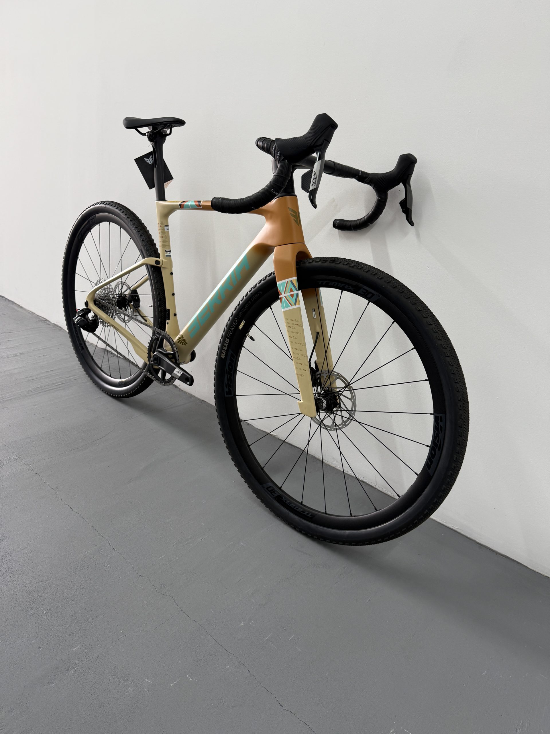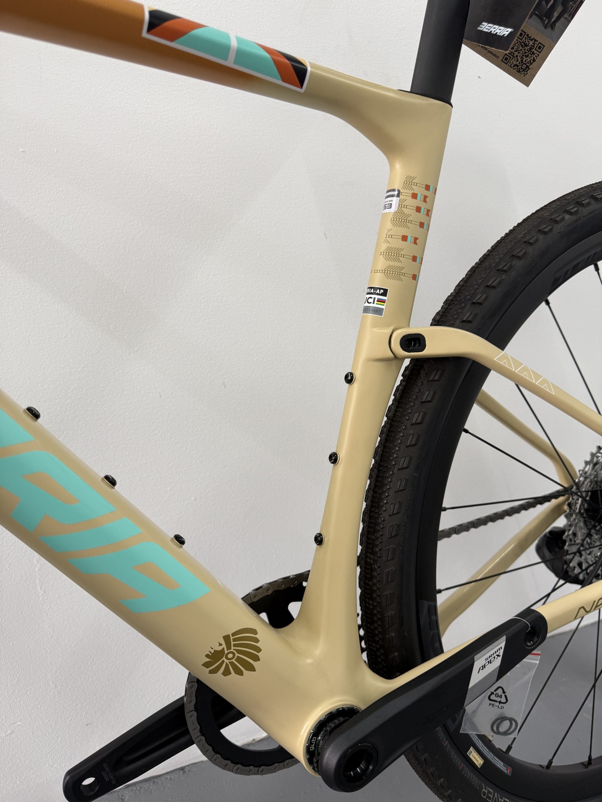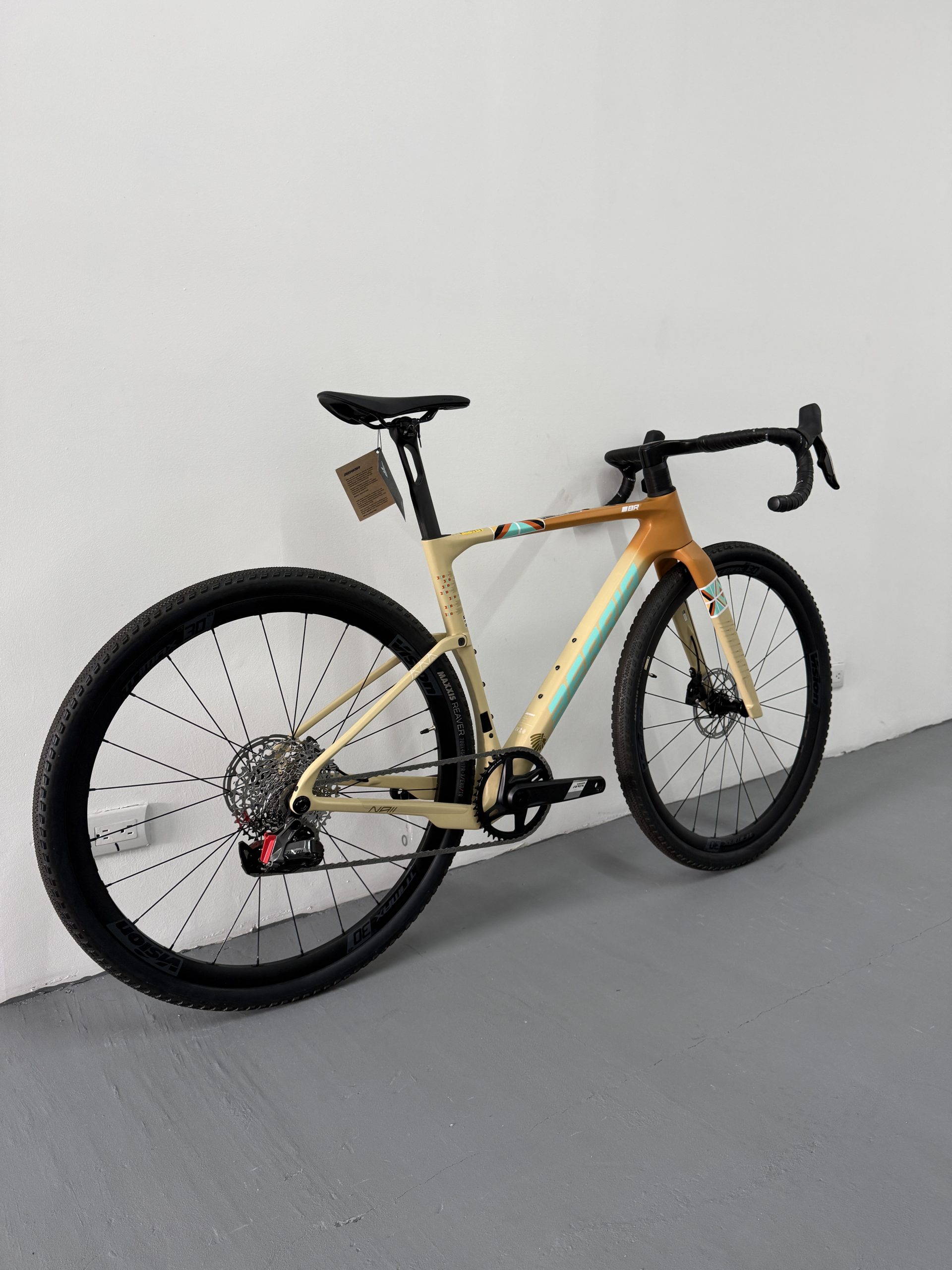 La NAII BR es la nueva gravel de referencia de Berria, diseñada desde cero para el gravel de competición. Cuadro en carbono HM3X (mezcla de fibras T1100G, T800 y T700) con el sistema SOFTEX de 28mm, manillar integrado Avanforce Airone GR en carbono, cableado ICS2 completamente oculto y transmisión electrónica inalámbrica SRAM Apex XPLR AXS 12v. Clearance para neumáticos hasta 700x50c. Una máquina de gravel rápida, aerodinámica y lista para todo tipo de terreno.
