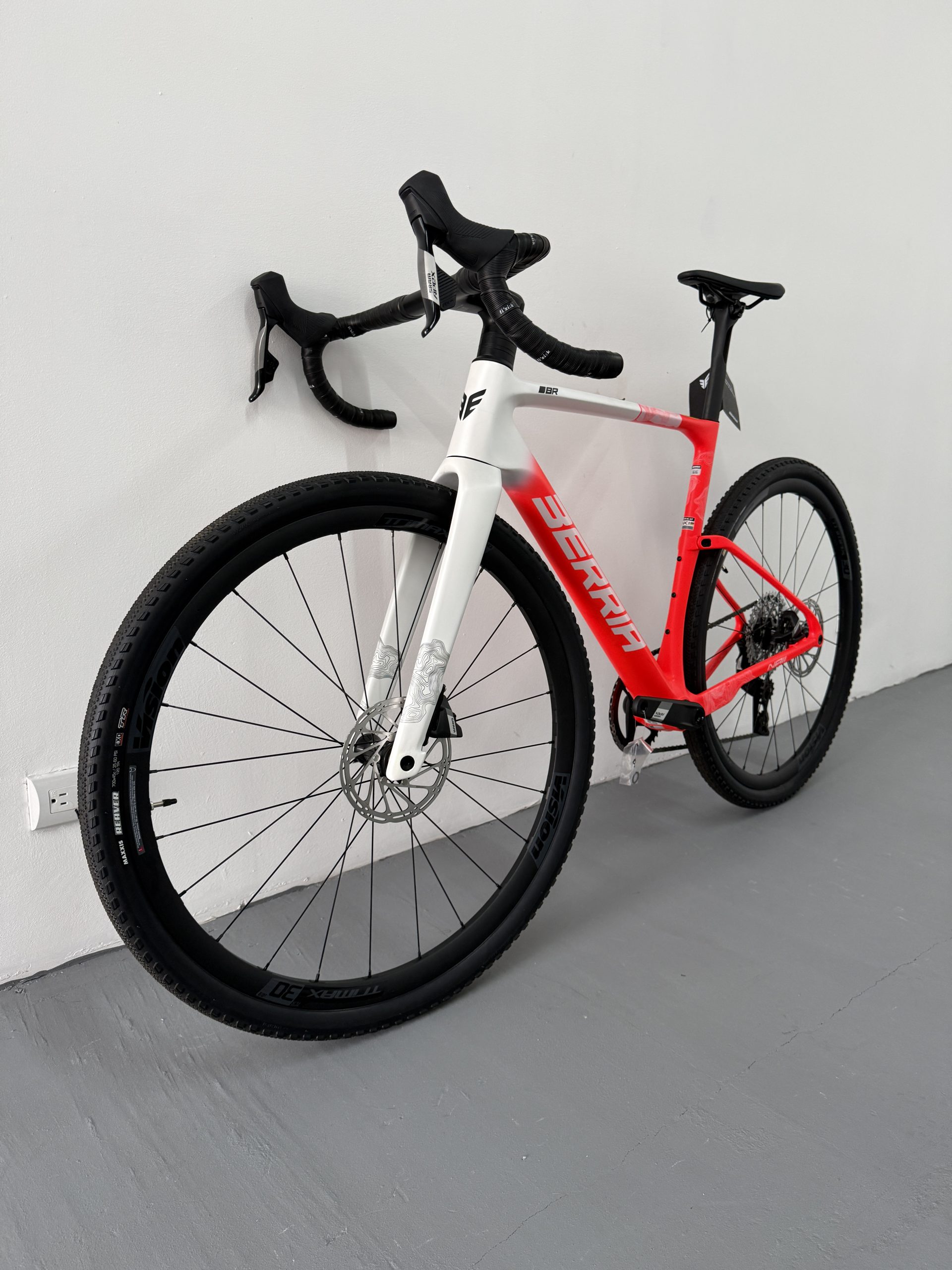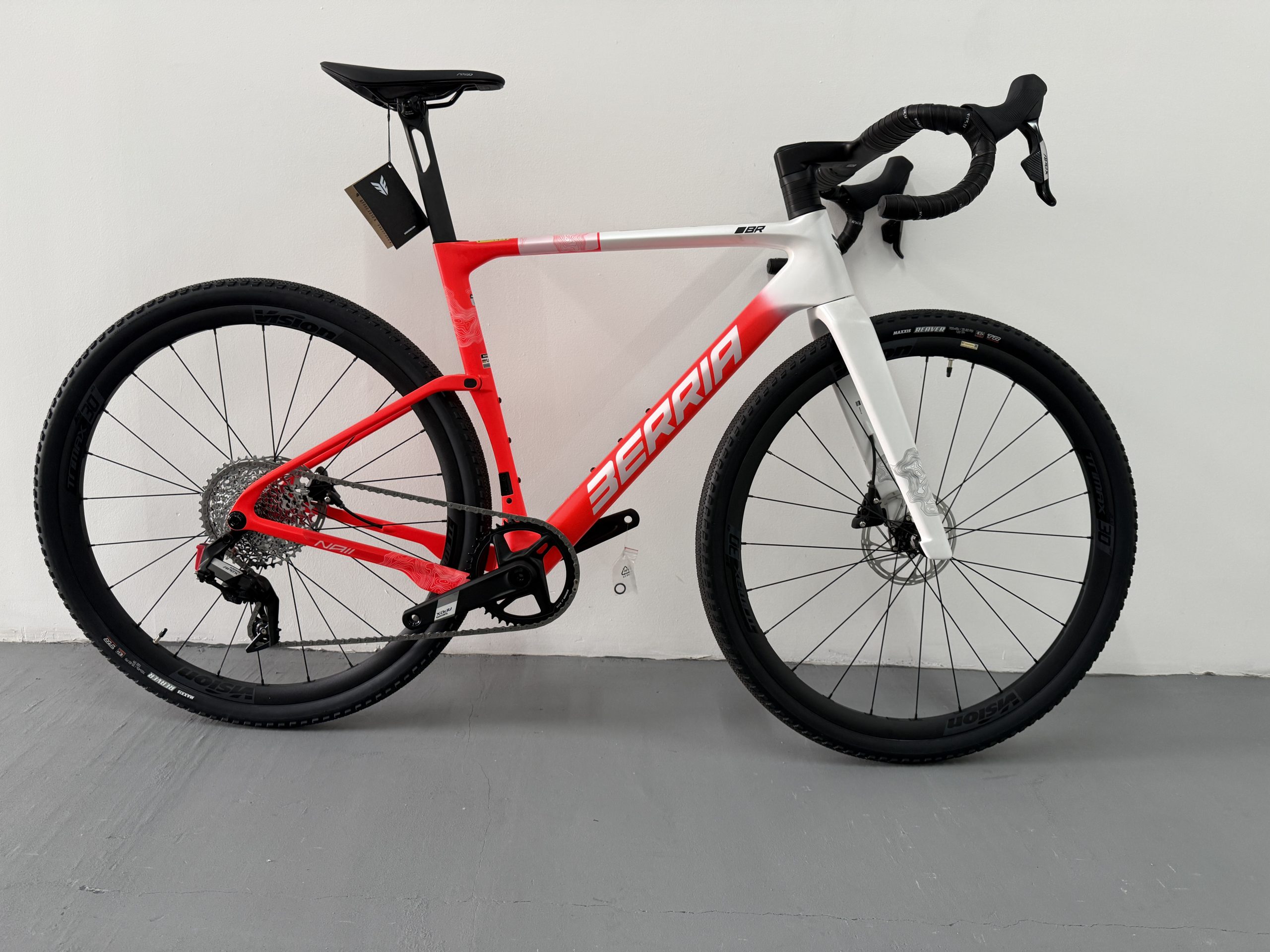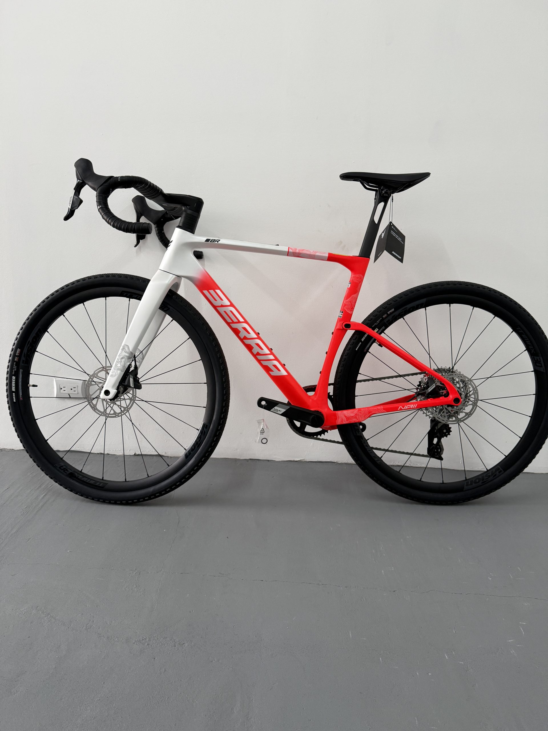 La NAII BR es la nueva gravel de referencia de Berria, diseñada desde cero para el gravel de competición. Cuadro en carbono HM3X (mezcla de fibras T1100G, T800 y T700) con el sistema SOFTEX de 28mm, manillar integrado Avanforce Airone GR en carbono, cableado ICS2 completamente oculto y transmisión electrónica inalámbrica SRAM Apex XPLR AXS 12v. Clearance para neumáticos hasta 700x50c. Una máquina de gravel rápida, aerodinámica y lista para todo tipo de terreno.